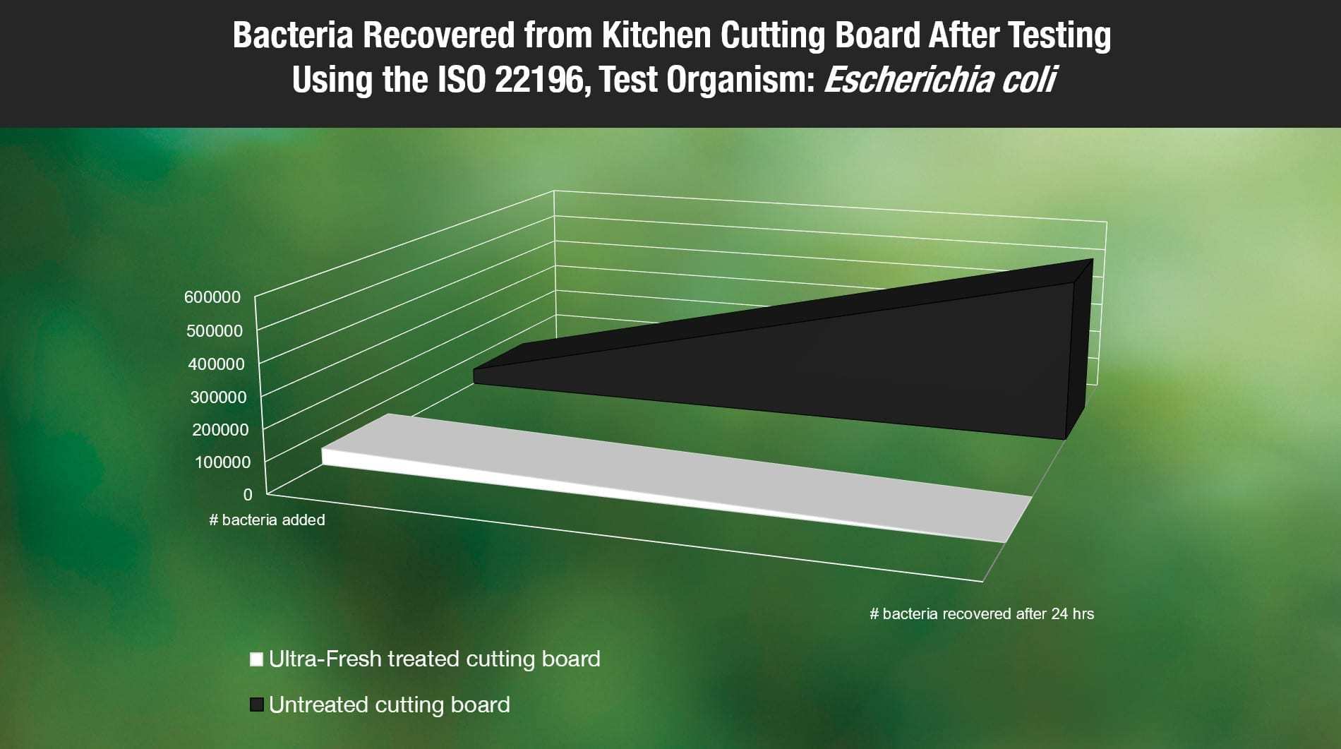 然而,在同一时间段内,与未经处理的砧板相比,经 Ultra-Fresh 抗菌添加剂处理的砧板的细菌数量减少了 99.9%。